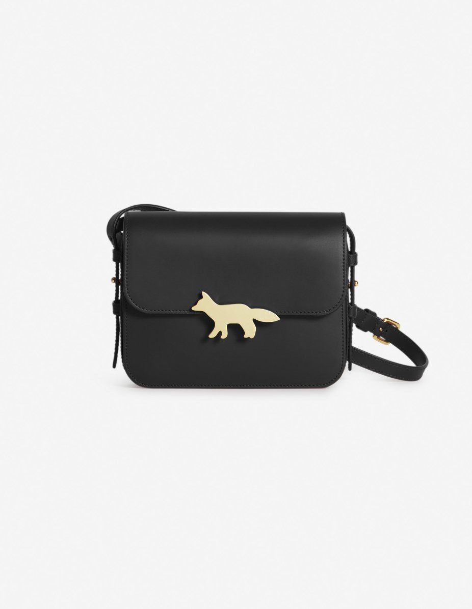 DETAILS Edie bag in smooth, matte leather, gold Profile fox clasp, adjustable shoulder strap. - Edie bag in smooth, matte leather - Worn crossbody or on the shoulder - Flap with gold-tone Profile fox clasp - Adjustable shoulder strap with buckle, loops and collar buttons - Three interior compartments, slip pockets and leather card holder - Gold Maison Kitsune embossed logo at the back - Twill lining - Dimensions: 20 x 16 x 5.5 cm - Clean with a soft cloth NW05170LR0001-P199 SIZE & CUT Sizing: UNISEX The female model is 1.76m tall and wears the black Edie MATERIAL Main Material: 100% LEATHER, Lining: 100% COTTON TRACEABILITY Made in Tunisia