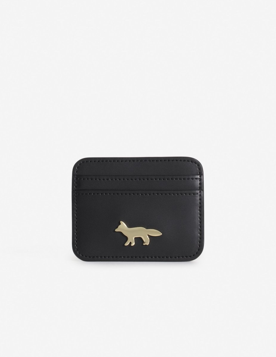 DETAILS Leather Edie cardholder with metal Profile Fox. - Smooth matte calfskin leather cardholder - Metal Profile Fox on the front - Maison Kitsune logo embossed on the back - Front and back card holder pockets - Dimensions: 9.5 x 7.5 cm OW05700LR0001-P199 SIZE & CUT Sizing: UNISEX MATERIAL Main Material: 100% COW LEATHER, Lining: 100% POLYESTER TRACEABILITY Made in Turkey