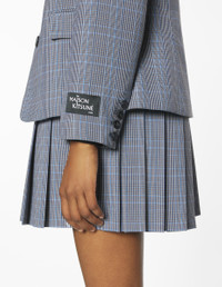 DETAILS Fitted tailored jacket in Japanese wool blend with Prince of Wale pattern. - Tailored jacket in Japanese wool blend - Prince of Wales pattern woven in the fabric - Fitted fit - Two front flap pockets - Two-button closure - Fox Column label applied at the cuff and Profile fox chain at the interior neckline PW02111WT3013-0361 SIZE & CUT Cut: FITTED Sizing: WOMEN The female model is 5.7 and is wearing size 36 MATERIAL Main Material: 50% POLYESTER, 50% WOOL, Lining: 49% COTTON, 51% VISCOSE TRACEABILITY Made in Portugal
