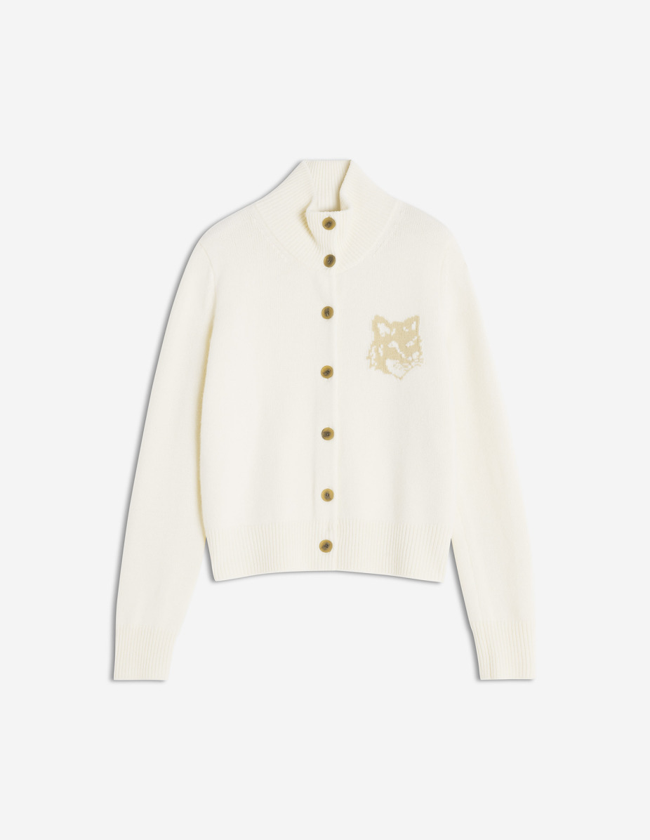 FOX HEAD INTARSIA MERINO HIGH NECK CARDIGAN