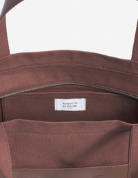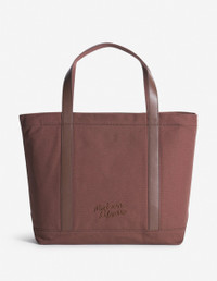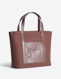 DETAILS Large Fox Head tote bag in canvas and leather. - Large plain tote bag in cotton canvas and smooth leather - Two long leather handles for hand or shoulder carry - Front leather patch pocket with tonal Fox Head embossed - Tonal Maison Kitsune Handwriting signature embroidered on the back - Zip closure with engraved Profile fox puller - Interior patch pocket - Twill lining - Dimensions: 48.5 x 36 x 14 cm PW05103OF0002-0316 SIZE & CUT Sizing: UNISEX MATERIAL Main Material: 100% COTTON, Secondary material: 100% LEATHER TRACEABILITY Made in China