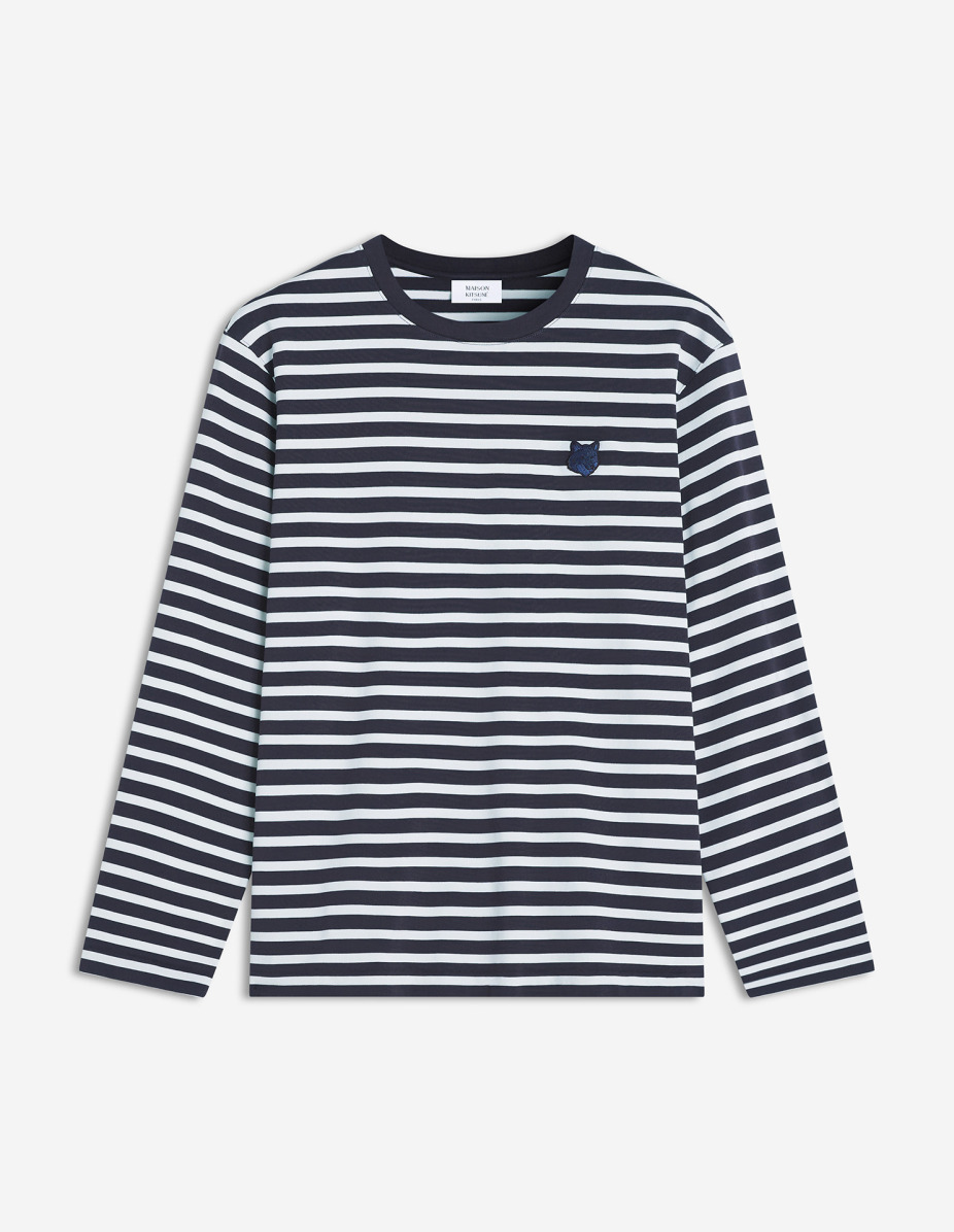 DETAILS Striped mercerized cotton long-sleeve T-shirt. Comfort fit with Fox Head embroidered patch. - Mercerized cotton mariniere T-shirt - Comfort fit - Long sleeves - Crew neck with rib finishing - Tonal Fox Head embroidered patch on the chest PM00122KJ0044-B481 SIZE & CUT Cut: COMFORT Sizing: MEN The male model is 6.1 and is wearing size M MATERIAL 100% COTTON TRACEABILITY Made in Portugal