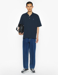 DETAILS Oversize fit polo with short sleeves in soft cotton pique, Tonal Fox Head embroidered patch on the chest. - Cotton pique polo - Organic cotton - Oversize fit - Short sleeves - Polo collar in ribbing with button placket - Tonal Fox Head embroidered atch on the chest PM00211KP0001-0413 SIZE & CUT Cut: OVERSIZE Sizing: MEN The male model is 6.2 and is wearing size M MATERIAL 100% COTTON TRACEABILITY Made in Portugal