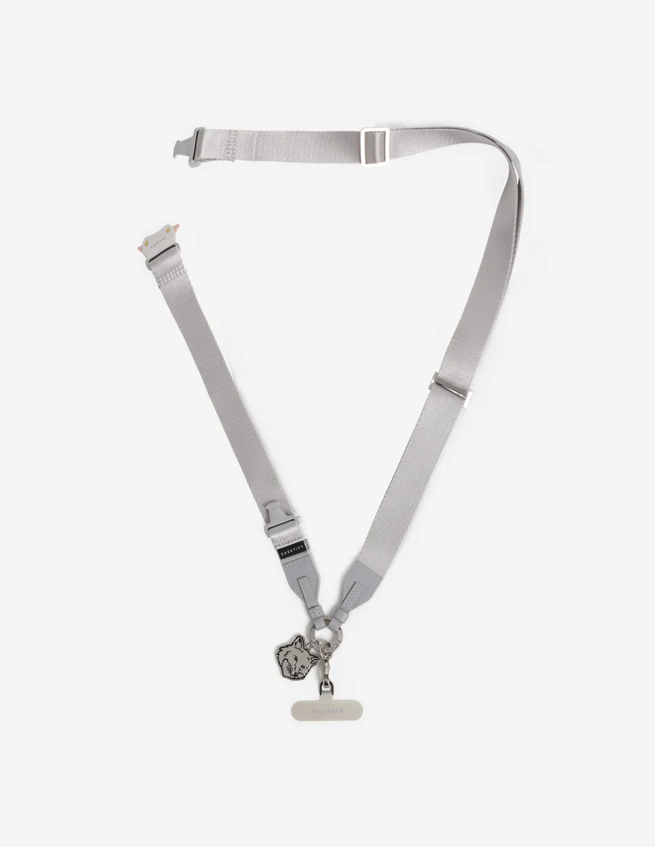 DETAILS Maison Kitsune x Casetify tech accessory strap with Bold Fox Head and Fox Head branding. - Tech accessory in collaboration with Casetify - Wrist strap with Bold Fox Head print - Practical attachment system for electronic devices - Maison Kitsune x Casetify collaboration PU08002-P182 SIZE & CUT Sizing: UNISEX MATERIAL 35% ALUMINIUM, 35% NYLON, 30% ZINC ALLOY TRACEABILITY Made in China