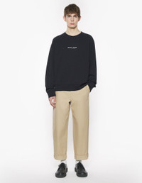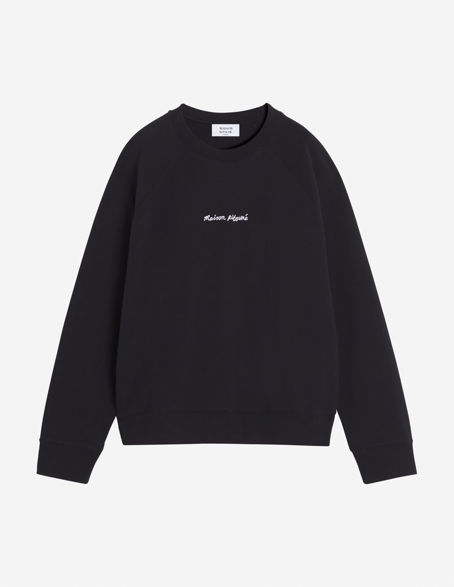 DETAILS Long sleeve fleece sweatshirt. Oversized cut with embroidered Maison Kitsune Handwriting signature. - Plain fleece sweatshirt - Oversized cut - Crewneck - Contrasted Maison Kitsune Handwriting signature embroidered on the front - Long raglan sleeves - Ribbing at the neckline, cuffs, and waistband - Plain back OM00309KM0001-P199 SIZE & CUT Cut: OVERSIZE Sizing: MEN The male model is 11 and is wearing size M MATERIAL Main Material: 100% COTTON, RIB: 98% COTTON, 2% ELASTANE TRACEABILITY Made in Portugal