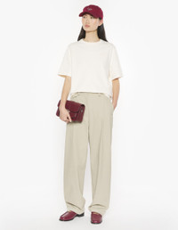 DETAILS T-shirt with short sleeves in cotton jersey (240g). Comfort fit with embroidered Maison Kitsune Handwriting signature. - T-shirt in cotton jersey (240g) - Organic cotton - Comfort fit - Short sleeves - Crew neck with rib finishing - Tonal Maison Kitsune Handwriting signature embroidered on the chest PW00114KJ0119-0306 SIZE & CUT Cut: COMFORT Sizing: WOMEN The female model is 5.7 and is wearing size S MATERIAL 100% COTTON TRACEABILITY Made in Portugal