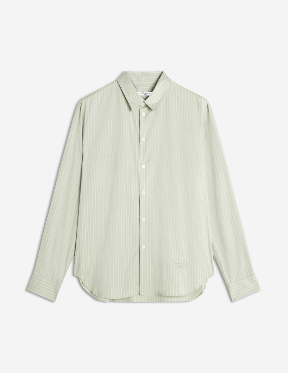 DETAILS Casual striped cotton poplin shirt. Relaxed fit with Maison Kitsune Handwriting signature embroidered. - Casual striped cotton poplin shirt - Relaxed fit - Classic collar - Maison Kitsune engraved button closure - Maison Kitsune Handwriting signature embroidered at the bottom left - Long sleeves with straight buttoned cuffs - Curved hem MM00403WC5066-0311 SIZE & CUT Cut: RELAXED Sizing: MEN The male model is 9.1 and is wearing size M MATERIAL 100% COTTON TRACEABILITY Made in Lithuania