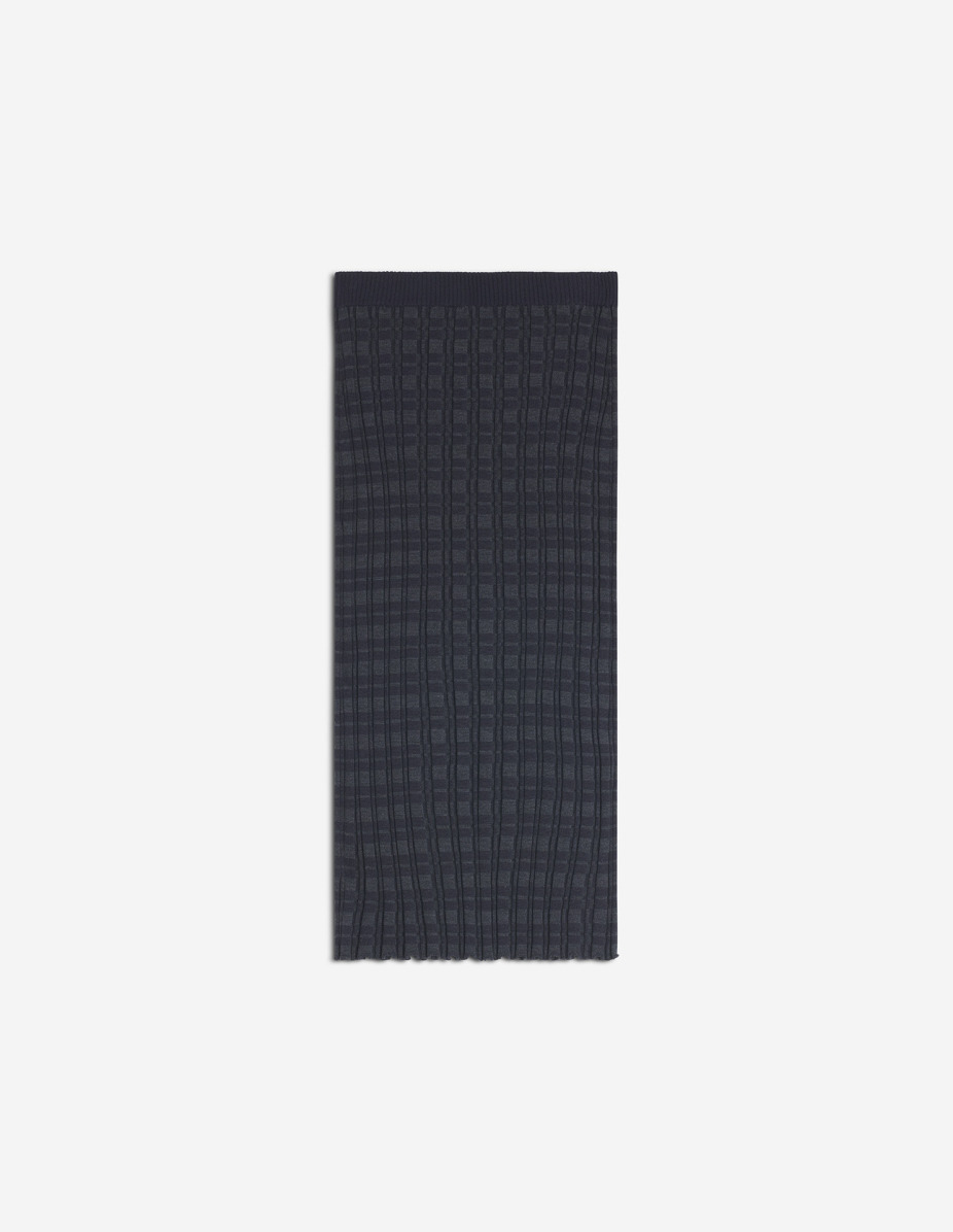 DETAILS Midi skirt in ribbed merino wool check. - Merino wool ribbed skirt with check motif - Fitted fit - Midi length - Elasticated waistband - Tonal Maison Kitsune Handwriting signature embroidered at the back PW01518KT1170-0379 SIZE & CUT Cut: FITTED Sizing: WOMEN The female model is 5.7 and is wearing size S MATERIAL 100% WOOL TRACEABILITY Made in China