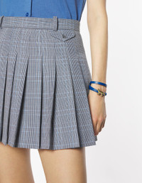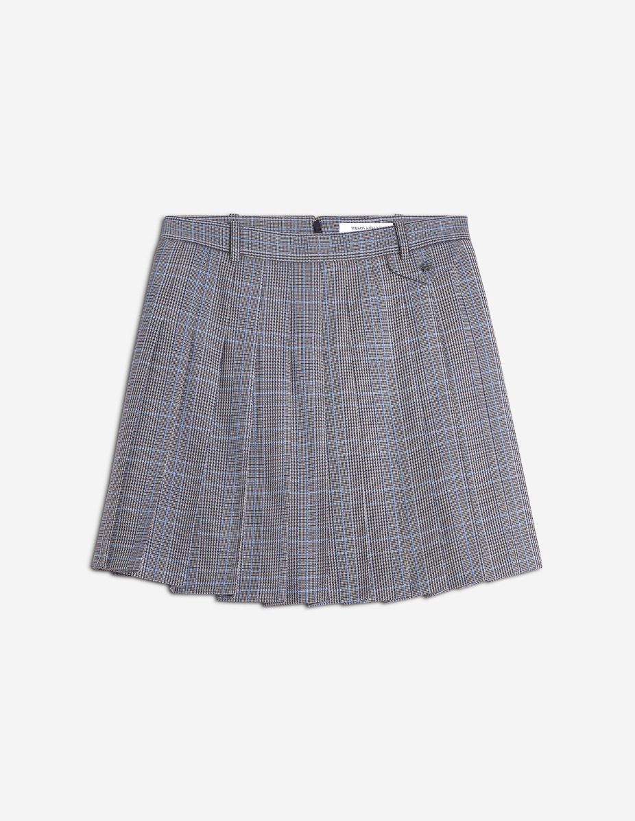 DETAILS Pleated mini skirt in Japanese Prince of Wales wool. - Pleated mini skirt in Japanese wool blend - Prince of Wales pattern woven in fabrics - Mini length - Waistband with belt loops - Hidden back zip fastening - Front flap pocket with gold-tone Profile Fox branded button on flap PW01508WT3013-0361 SIZE & CUT Cut: MINI Sizing: WOMEN The female model is 5.7 and is wearing size 36 MATERIAL Main Material: 50% POLYESTER, 50% WOOL, Lining: 49% COTTON, 51% VISCOSE TRACEABILITY Made in Poland