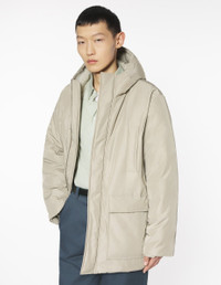 DETAILS Water-repellent nylon quilted parka. Maison Kitsune silicone patch. - Quilted parka in water-repellent nylon twill - Comfort fit - Quilted hood - Hidden zip and snap fastening - Two welt pockets on the chest - Two gusseted flap pockets with snaps at the front - Inside pocket - Gel padding for optimal warmth - Silicon Maison Kitsune Paris patch on the sleeve PM02212WW9070-0302 SIZE & CUT Cut: COMFORT Sizing: MEN The male model is 6.1 and is wearing size M MATERIAL Main Material: 100% POLYAMIDE, Stuffing material: 100% POLYESTER TRACEABILITY Made in China