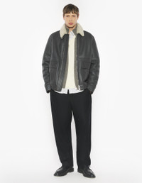 DETAILS Shearling jacket. - Shearling blouson, for optimal thermal comfort - Comfort fit - Shearling collar with leather tab underneath - Double-slider zipper engraved with a Profile fox - Two front flap patch pockets - Maison Kitsune engraved interior chain at the neckline PM02201LR0051-0316 SIZE & CUT Cut: COMFORT Sizing: MEN The male model is 6.1 and is wearing size M MATERIAL Main Material: 100% LAMB LEATHER, Pocket lining: 35% COTTON, 65% POLYESTER TRACEABILITY Made in Turkey