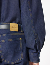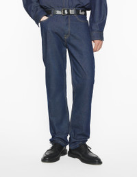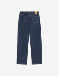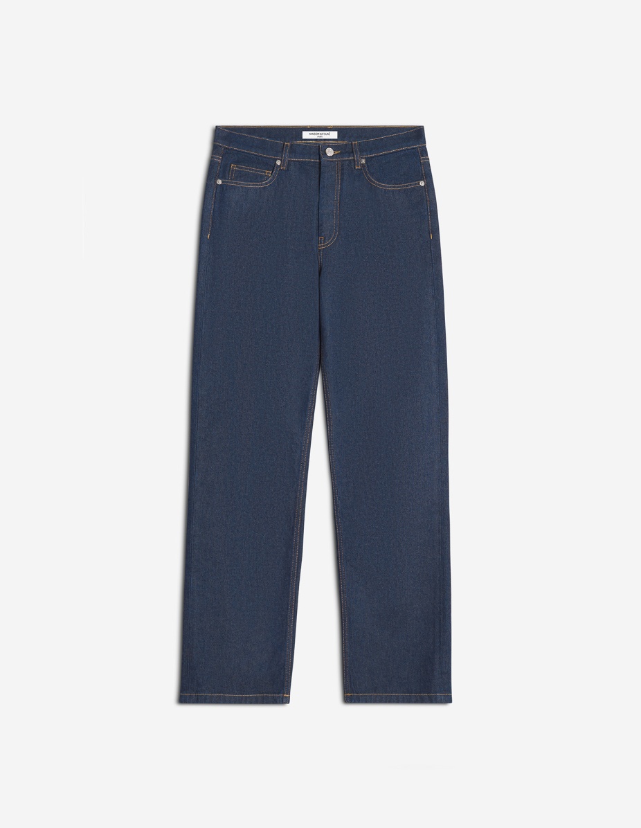 DETAILS Japanese denim jeans. Straight fit with embossed Maison Kitsune Handwriting jacron. - Japanese denim jeans - Straight fit - Waistband with belt loops - Maison Kitsune engraved metal button and buttoned fly under placket - Five pockets - Embossed leather jacron with Maison Kitsune Handwriting signature at the back PM01109WW0081-P470 SIZE & CUT Cut: STRAIGHT Sizing: MEN The male model is 6.1 and is wearing size 30 MATERIAL Main Material: 100% COTTON, Pocket lining: 48% COTTON, 52% POLYESTER TRACEABILITY Made in Bulgaria
