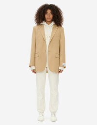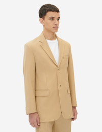 DETAILS Wool grain de poudre jacket. Classic cut with two buttons. - Wool grain de poudre jacket - Straight cut - Two-button closure - Patch waist pockets - Slash breast pocket - Two-button cuffs - “Maison Kitsune” label at cuff JM02149WT0020-P220 SIZE & CUT Cut: OVERSIZE Sizing: MEN MATERIAL Main Material: 55% POLYESTER, 45% VIRGIN WOOL, Lining: 100% VISCOSE TRACEABILITY Made in Romania