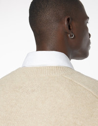 DETAILS Yak and merino wool sweater, comfort fit, Maison Kitsune Handwriting signature embroidered at the back. - Jumper in yak and extrafine merino wool - Comfort fit - Crew neck - Long sleeves - Rib finishing at the neckline, cuffs and hem - Maison Kitsune Handwriting signature embroidered tone-on-tone at the back PM00807KT1165-0335 SIZE & CUT Cut: COMFORT Sizing: MEN The male model is 6.1 and is wearing size M MATERIAL 50% WOOL, 50% YACK TRACEABILITY Made in China