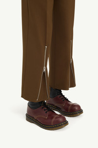 Combining MM6's subversive approach with Dr. Martens iconic craftsmanship, these leather boots feature a sleek skinny ankle shaft, signed with the Maison’s numeric artwork. The design plays with proportion and volume, enhancing the utilitarian silhouette. Complete with the unmistakable Dr. Martens sole, their hybrid design offers a distinctive fusion of attitude and function. Product Details Item ID S66WU0125P8029H6077 Upper: 100% calf leather Constrast: 100% calf leather Lining: 50% nylon, 50% polyurethane Inside: 100% calf leather Sole: 100% polyvinylchloride Trunk in black vintage leather and oxblood vintage smooth leather Skinny ankle shaft Debossed MM6 numeric signature Dr. Martens sole