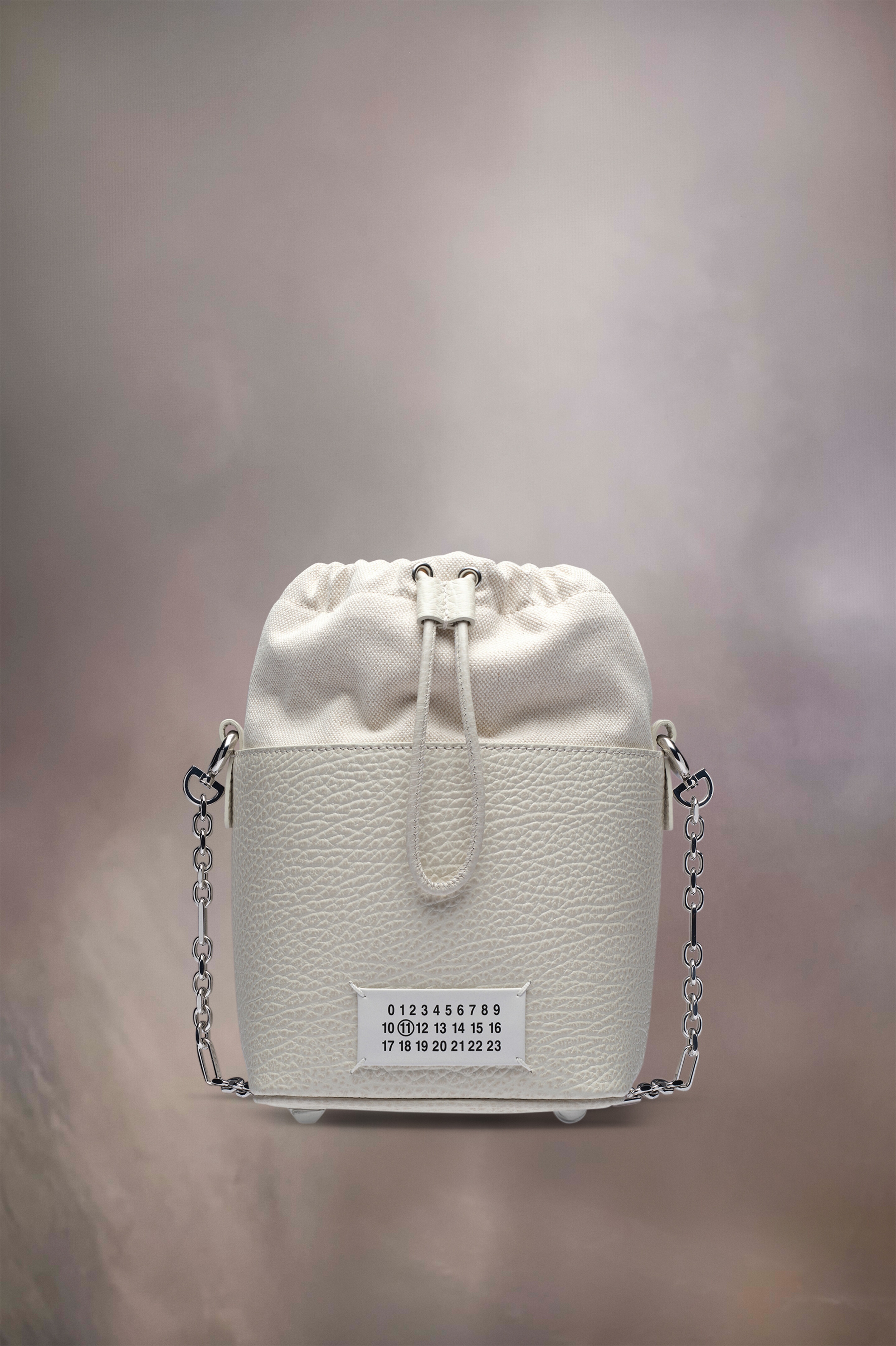 The 5AC bucket small, crafted from grainy leather, features a top handle and a chain shoulder strap. It is accented with the logo label at the front. The iconic 5AC line takes its name from the French word 'sac' (bag). It explores the Maison's Anonymity of the lining concept. The bag's metal rivets are covered in leather by hand, with the metal visible only where needed, for a clean aspect. Artisanal details include the bag's exposed edges hand-painted in tone with the leather. Product Details Item ID S61WG0035P4348H9677 Outer: Grainy calf leather with soft touch Lining: Cotton Detachable and adjustable chain and leather shoulder strap Removable handle Logo label at the front Drawstring closure Internal Four stitches Internal logo stamping Internal flat pocket Metal feet Clean with a specific leather cleaner product and a damp microfiber cloth Made in Italy 14 cm x 12 cm x 15 cm/5,5 in x 5 in x 6 in (Height x Width x Length) Height refers to the closed bag with lining and label inside Handle drop: 9 cm/3,5 in Max. shoulder strap drop: 60 cm/23,6 in Min. shoulder strap drop: 52 cm/20,4 in A digital certificate provided by the Aura Blockchain Consortium guarantees the authenticity of this product. Discover more on auraluxuryblockchain.com/#about