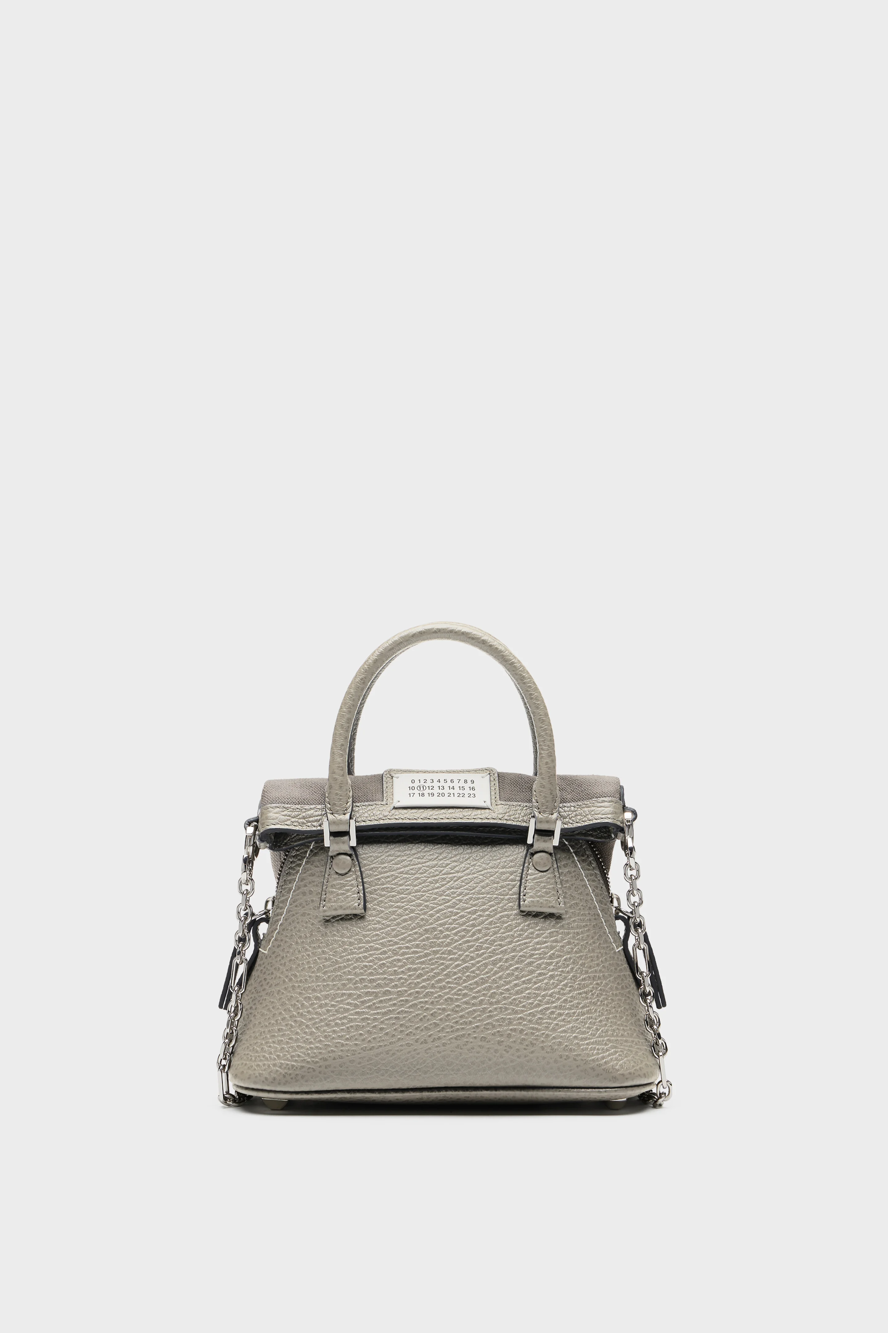 The 5AC classique micro, crafted from grainy leather, features top handles and a chain shoulder strap. It is accented with the logo label at the front. The iconic 5AC line takes its name from the French word 'sac' (bag). It explores the Maison's Anonymity of the lining concept. The bag's metal rivets are covered in leather by hand, with the metal visible only where needed, for a clean aspect. Artisanal details include the bag's exposed edges hand-painted in tone with the leather. Product Details Item ID S56WG0081P4455T8049 Body: 100% Calf Leather Contrast: 79% Cotton 15% Polyester 6% Other Fibers Lining: 100% Cotton Inside: 100% Calf Leather Metallic hardware Top-handle bag in grained leather with contrast canvas panel Detachable and adjustable chain and leather shoulder strap Zip closure at the top Numeric signature label at the front Protective metal feet at the base Four stitches at the back Made in Italy