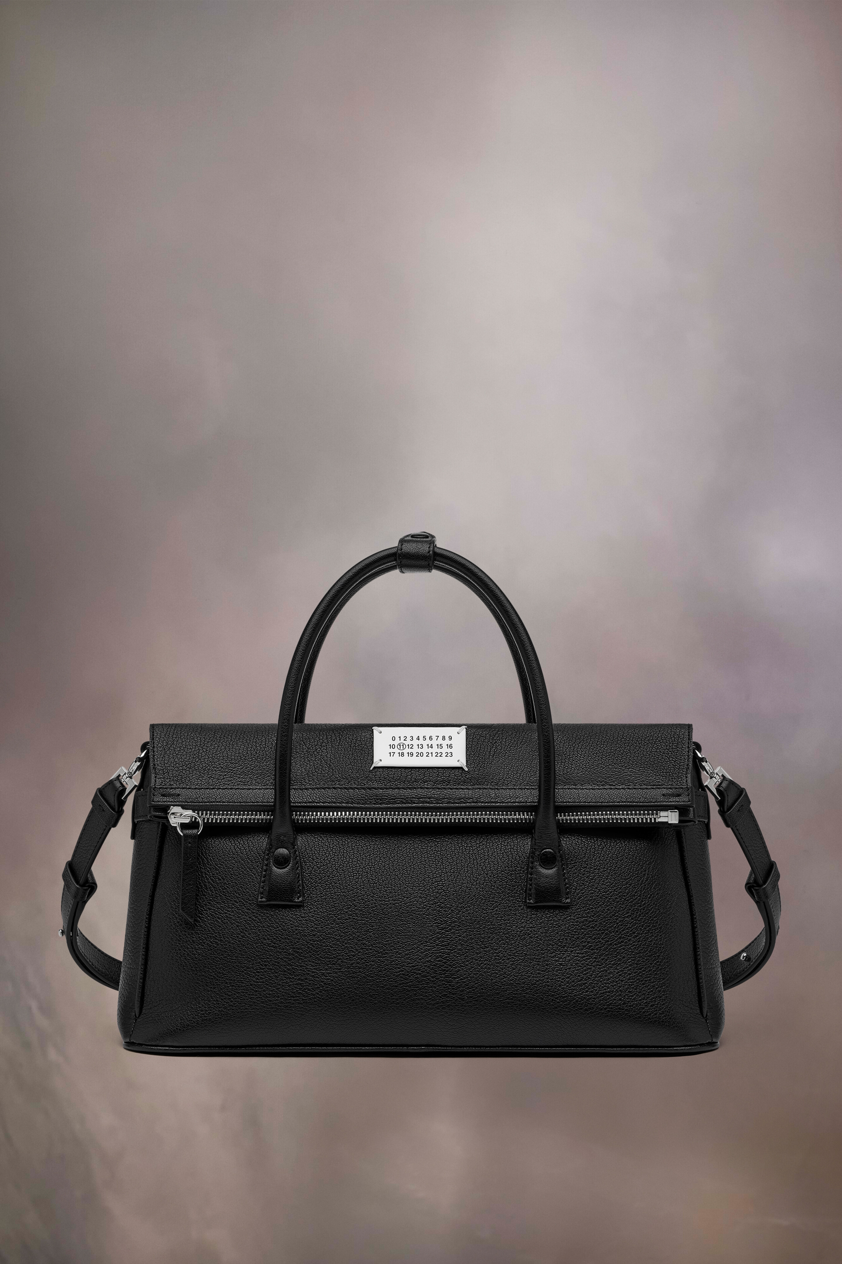 The 5AC handbag, crafted from goat leather, features top handles and a fold-over design. It is accented with the logo label at the front. The iconic 5AC line takes its name from the French word 'sac' (bag). It explores the Maison's Anonymity of the lining concept. The bag's metal rivets are covered in leather by hand, with the metal visible only where needed, for a clean aspect. Artisanal details include the bag's exposed edges hand-painted in tone with the leather. Product Details Item ID SB2WD0076P5348T8013 Body: 100% goat leather Lining: 100% polyester Metallic hardware Handbag in goat leather Handle Detachable and adjustable leather shoulder strap Zip closure Logo label on the front Four stitches on the back Logo stamp inside Inside pocket Metal feet Clean with a specific leather cleaner product and a damp microfiber cloth Made in Italy 19.5 cm x 12 cm x 32 cm/7,6 in x 4,7 in x 12,5 in (Height x Width x Length) Handle drop: 7 cm/2,7 in Max. shoulder strap drop: 40 cm/15,7 in Min. shoulder strap drop: 30 cm/12 in A digital certificate provided by the Aura Blockchain Consortium guarantees the authenticity of this product. Discover more on auraluxuryblockchain.com/#about