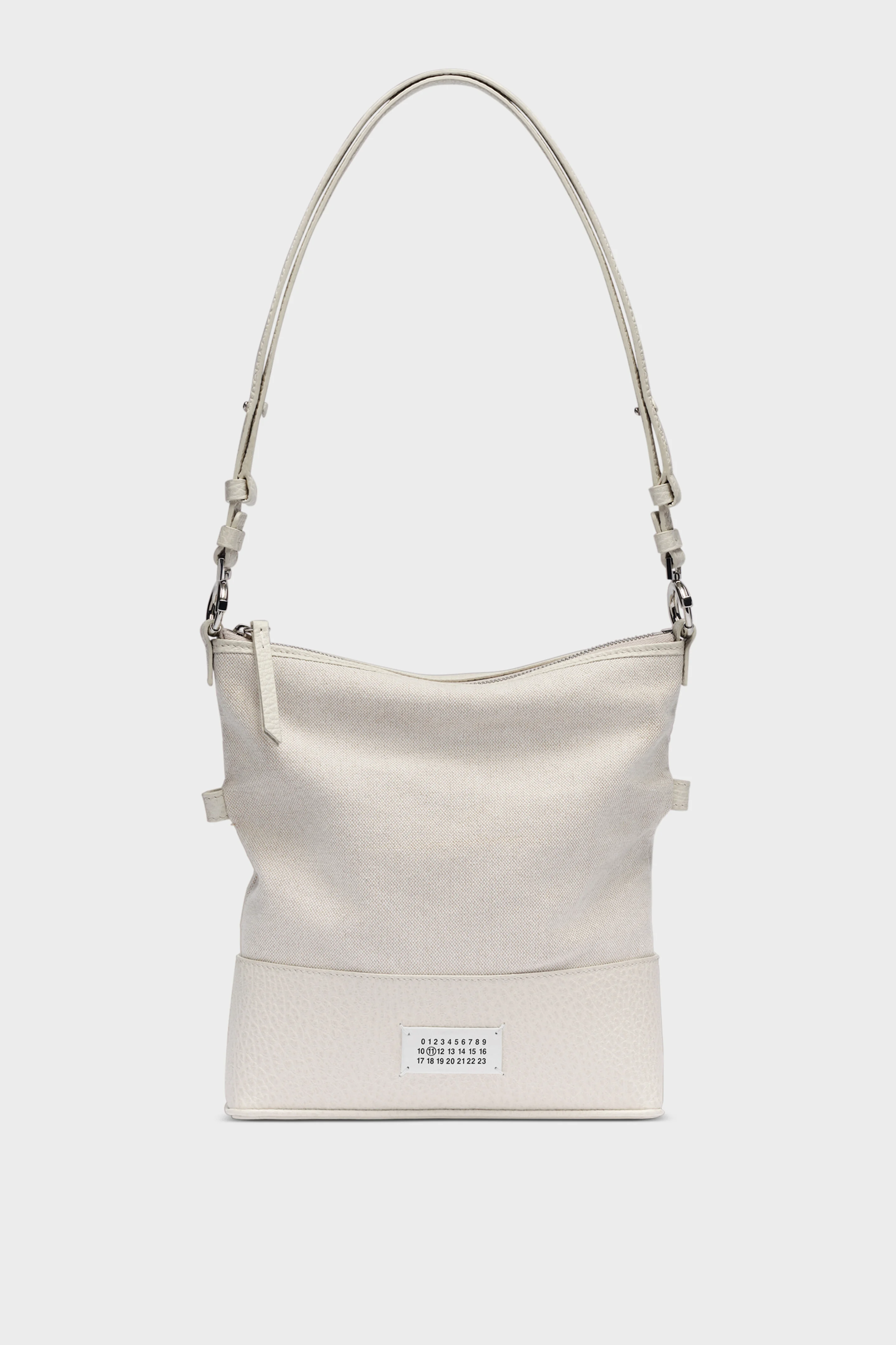 The 5AC hobo small, crafted from grainy leather, is accented with the logo label. The iconic 5AC line takes its name from the French word 'sac' (bag). It explores the Maison's Anonymity of the lining concept. The bag's metal rivets are covered in leather by hand, with the metal visible only where needed, for a clean aspect. Artisanal details include the bag's exposed edges hand-painted in tone with the leather. Product Details Item ID SB1WG0042P4348H9677 Body: 79% Cotton 16% Polyester 5% Other Fibers Contrast: 100% Calf Leather Lining: 100% Cotton Inside: 100% Calf Leather Metallic hardware Shoulder bag in cotton blend canvas with grained leather base Adjustable leather strap Top zip fastening Numeric signature label at the front Internal flat pocket Four stitches at the back Made in Italy