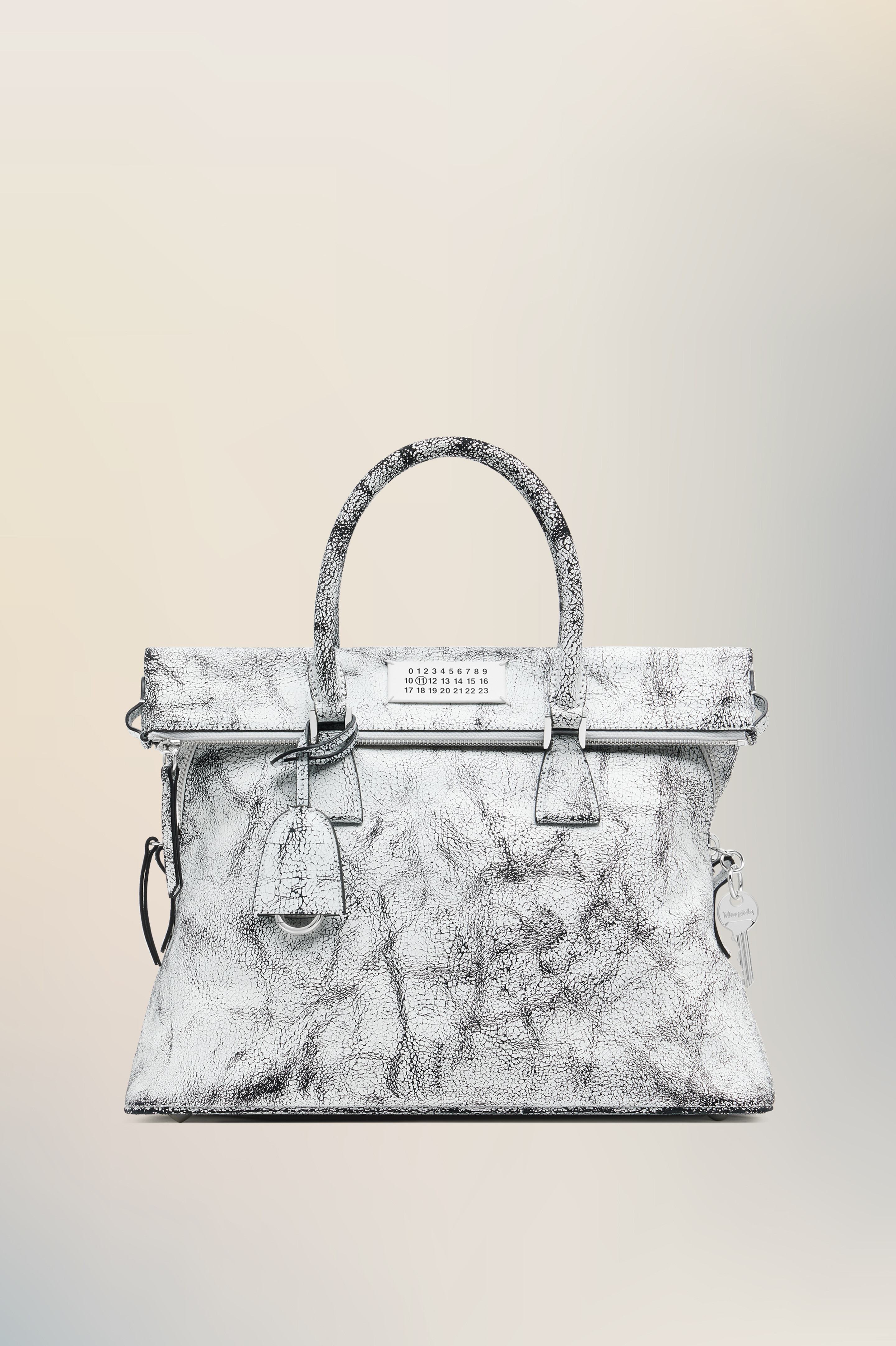 This 5AC Loved to Death medium is crafted in leather with a crackled treatment – a layered finish emblematic of the Maison. A matte coating is applied by hand over soft calf leather, designed to flake with time and reveal the beauty of wear and imperfection. The iconic 5AC line takes its name from the French word 'sac' (bag). It explores the Maison's Anonymity of the Lining concept. Accented with the Maison's numeric artwork and four stitches – the opposite of a label. Product Details Item ID SB1WG0074P8568H9672 Body: 100% Calf Leather Contrast: 100% Calf Leather Application: 100% Calf Leather Lining: 100% Cotton Inside: 100% Calf Leather Metallic hardware Top handle bag in crackled-effect calf leather Detachable and adjustable leather shoulder strap Zip-top fastening and fold-over detail Leather clochette Flat pocket at the rear Maison Margiela signature at the back Made in Italy
