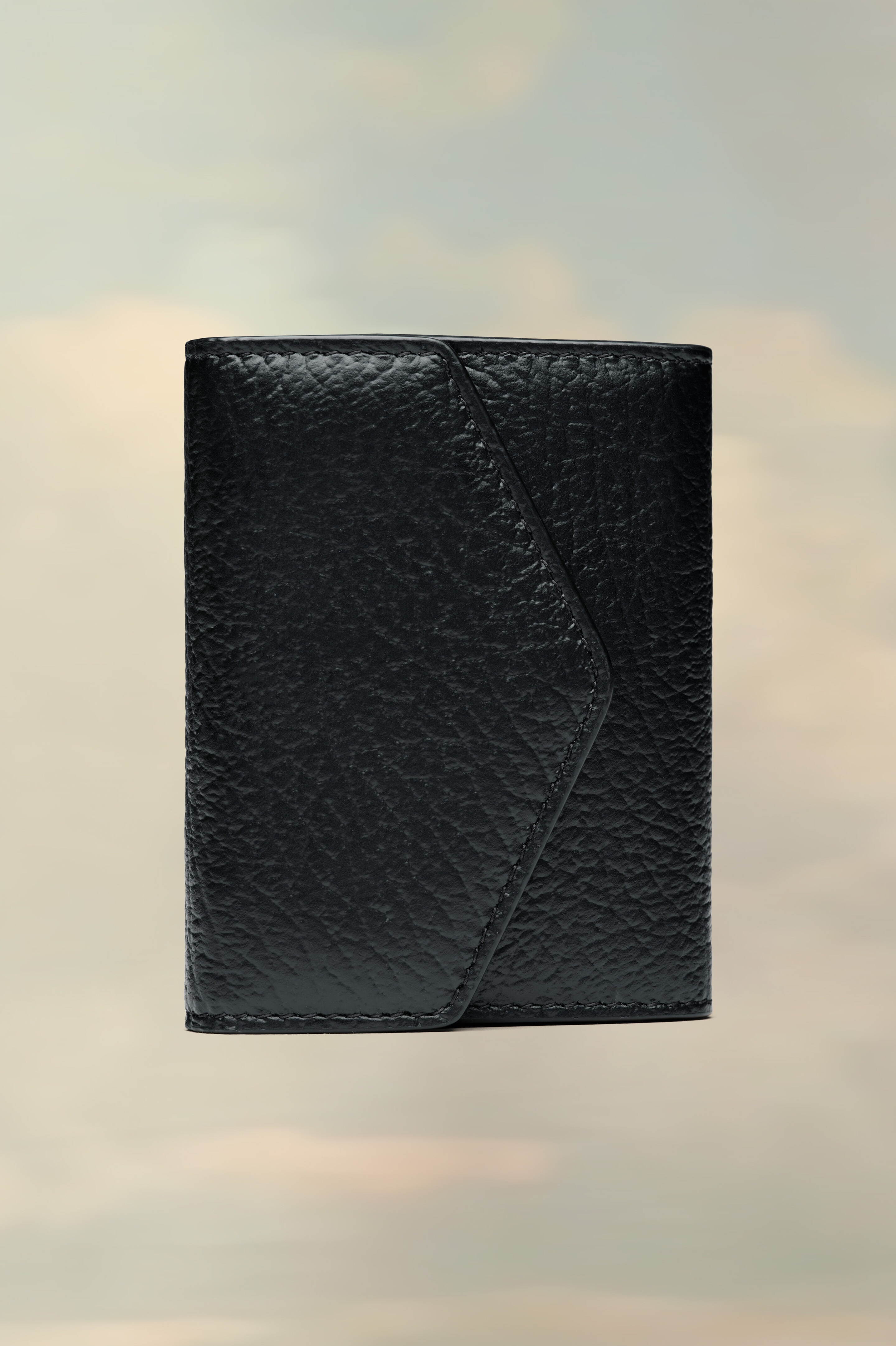 Envelope wallet with an accordion style inner, open sections and card slots. The Maison Margiela logo appears on the inside and the contrast four-stitches adorns the back.Made in Italy. Product Details Item ID S56UI0149P4455T8013 Outer: Grainy calf leather with soft touch Inner: Calf leather Lining: Viscose Four stitches at the front Snap button closure Inside logo stamping Inside flat pockets Two card slots Clean with a specific leather cleaner product and a damp microfiber cloth Made in Italy 10 cm x 8 cm/4 in x 3 in (Length x Height)