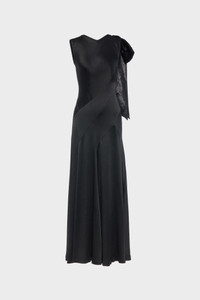 A floor length gown defined by contrast: the purity of its draped, sleeveless shape is offset by a sculptural bow at one shoulder. Cut with diagonal seams for fluid movement, the piece transforms in motion, revealing both precision and softness. At the back, the Maison’s signature four stitches appear; the opposite of a label. Product Details Item ID S51DG0004S49465900 Primary fabric: 52% viscose-rayon 48% acetate Secondary fabric: 100% polyester Hammered satin Maxi length Asymmetric panel with draped bow at shoulder Sleeveless Asymmetrical neck V-back neckline Side invisible zipper closure Four stitches at the back Made in Italy