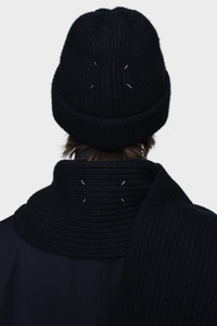 This beanie is made from finely spun cashmere in a classic ribbed knit. The folded brim adds gentle volume, while Maison Margiela’s signature, the four stitches, appear at the front; the opposite of a label. Product Details Item ID S50TB0014M13145524 Primary Fabric: 100% Cashmere Ribbed cashmere beanie with wide turn-up brim Four stitches at the front Made in Italy