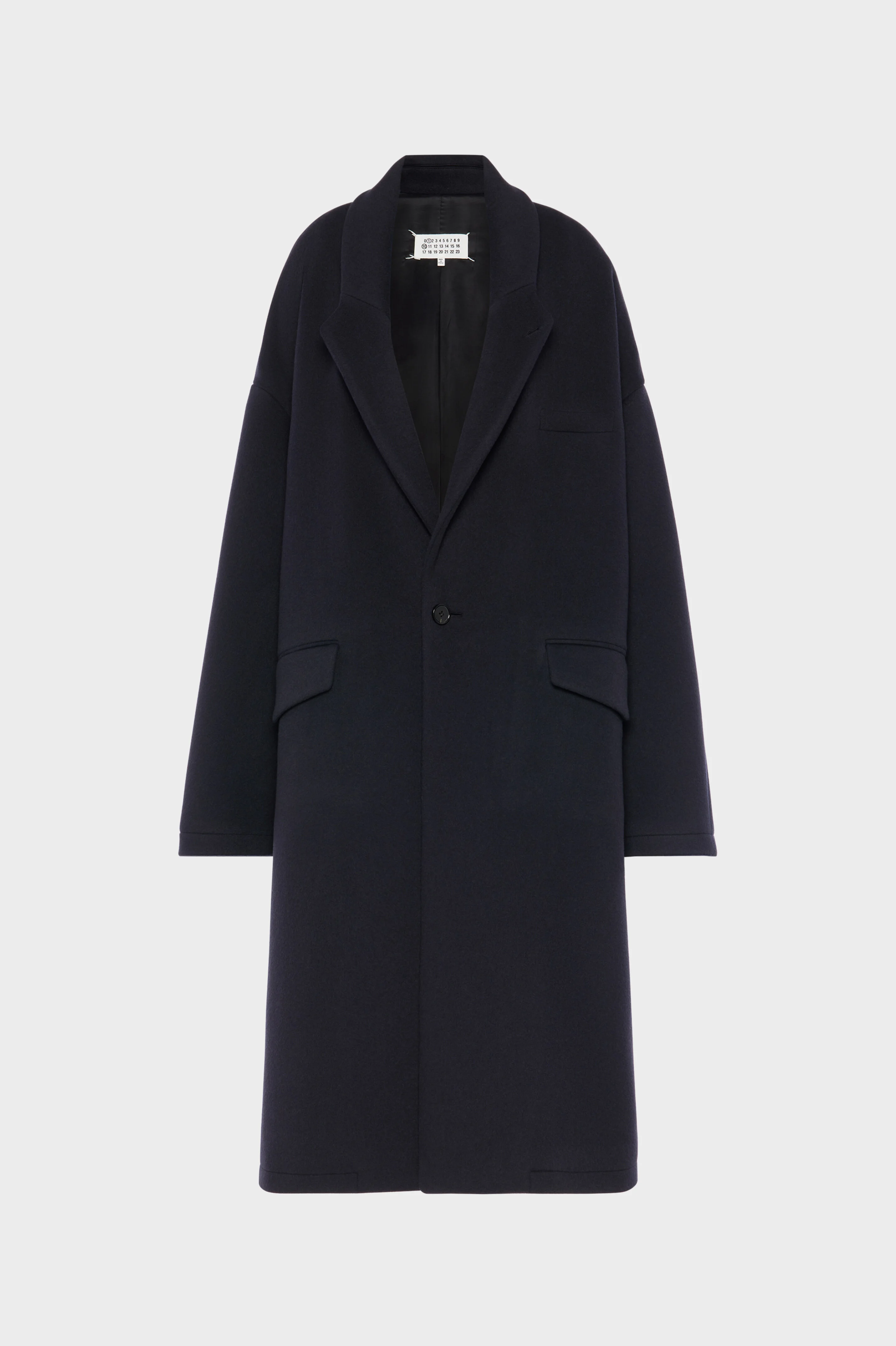 Crafted in a cashmere wool blend, this coat reinterprets the overcoat with voluminous proportions and precise tailoring. A single-breasted closure anchors the silhouette, while dropped shoulders and elongated lines create a sense of fluid structure. At the back, the Maison’s signature four stitches appear; the opposite of a label. Product Details Item ID S51AA0366M35664487 Primary fabric: 85% cashmere 15% wool Lining: 100% viscose-rayon Sleeve lining: 55% viscose-rayon 45% cupro Pocket lining: 100% cotton Cashmere cloth Long sleeves Notched lapels Front button closure Flap pockets at the front Four stitches at the back Made in Italy