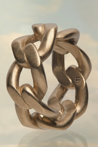 An interlocked chain ring, crafted from semi-polished silver. Product Details Item ID SI8UQ0004SV0130950 Composition: 100% Silver Silver gourmette ring Tone on tone engraved brand logo Avoid salt, chlorine water and aggressive liquid Made in Italy