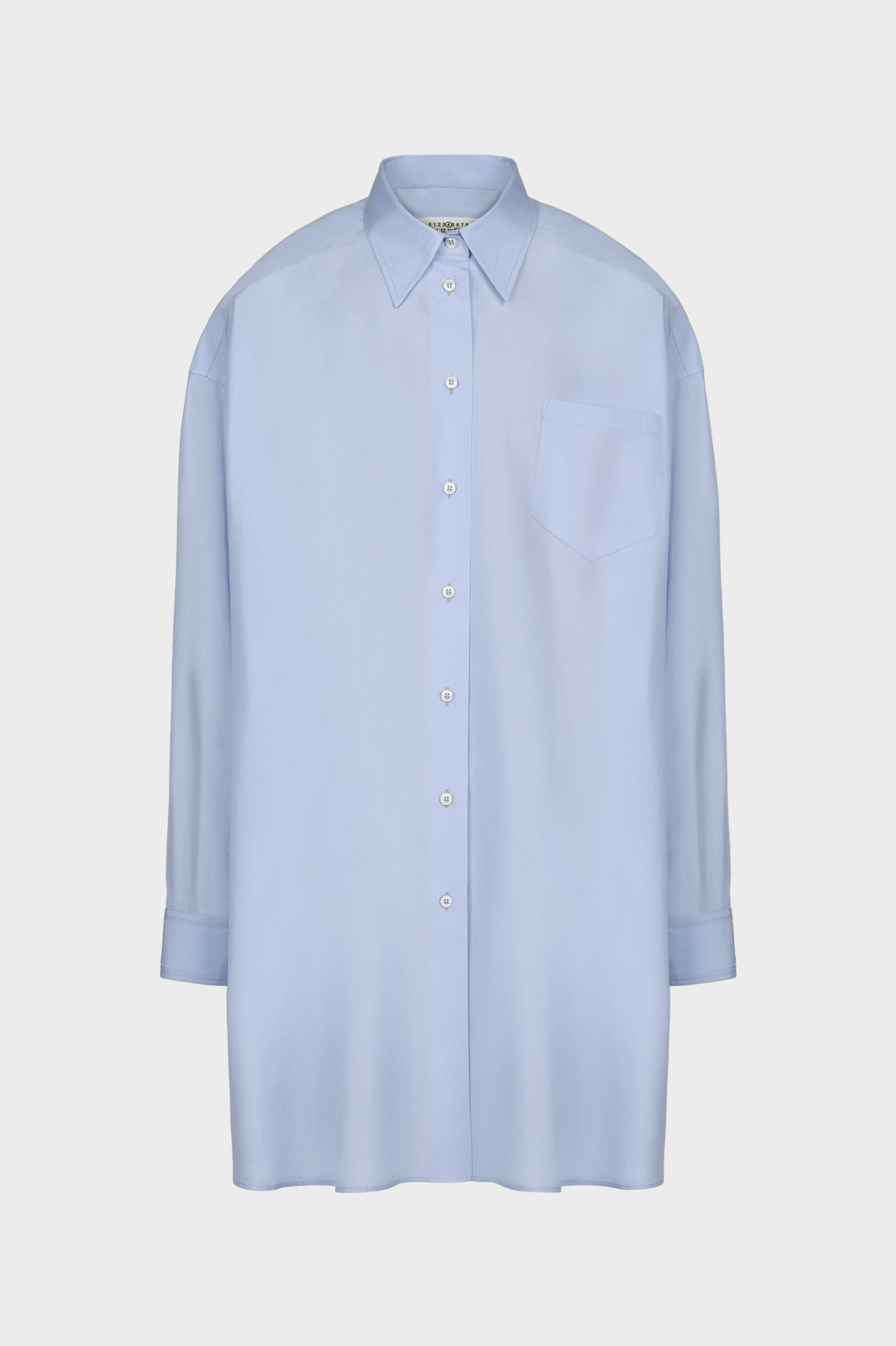 A classic shirt in cotton poplin, with a collar, buttoned placket and chest pocket. At the back, four white stitches show the hand of the Maison: the opposite of a label. Product Details Item ID SI0DL0002S60306471 Composition: 100% Cotton Oversized shirt Point collar Mother of pearl button closure Patch pocket Dropped shoulder Curved hem Side slits Four stitches at the back Made in Italy Oversized fit The model is 5'10" tall and wears size S.