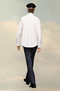 The classic long-sleeved shirt in eco cotton poplin with a collar, buttoned placket and chest pocket. Maison Margiela's signature, the four stitches, appear at the back; the opposite of a label. Product Details Item ID SI0DL0001S52245100 Composition: 100% Cotton Point collar Mother of pearl button closure Patch pocket Curved hem Four stitches at the back Made in Italy Oversized fit The model is 5'10" tall and wears size 40.