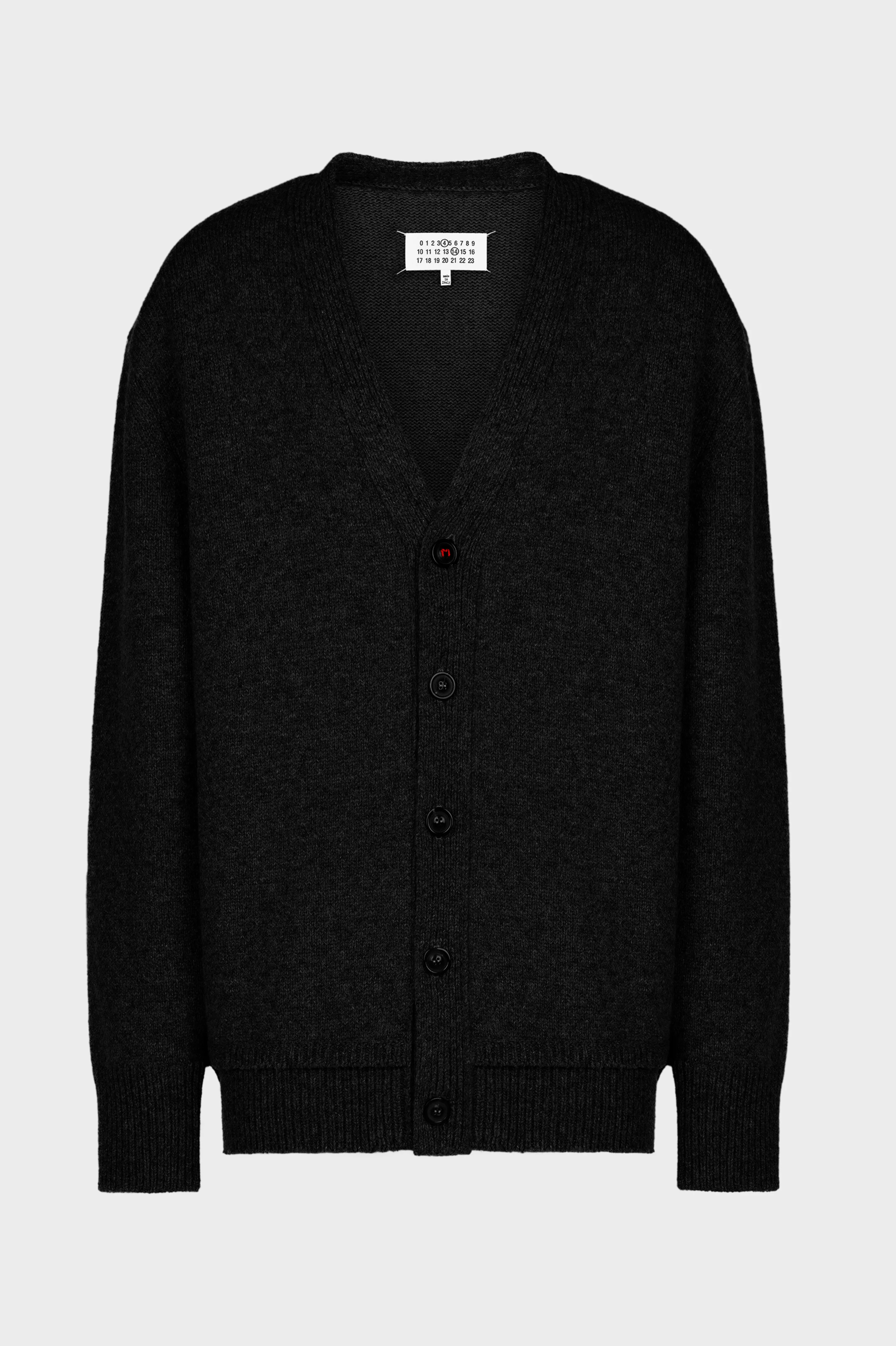 This low V-neck knit cardigan with long sleeves and ribbed trims features tonal elbow patches. At the back, four white stitches show the hand of the Maison: the opposite of a label. Gauge 5. Product Details Item ID SI1GP0003S18064900F Composition: 46% Wool, 31% Linen, 23% Cotton Cardigan Horn button closure with red M embroidery Ribbed trims Suede elbow patches Decortique details Four stitches at the back Gauge 5 Made in Italy