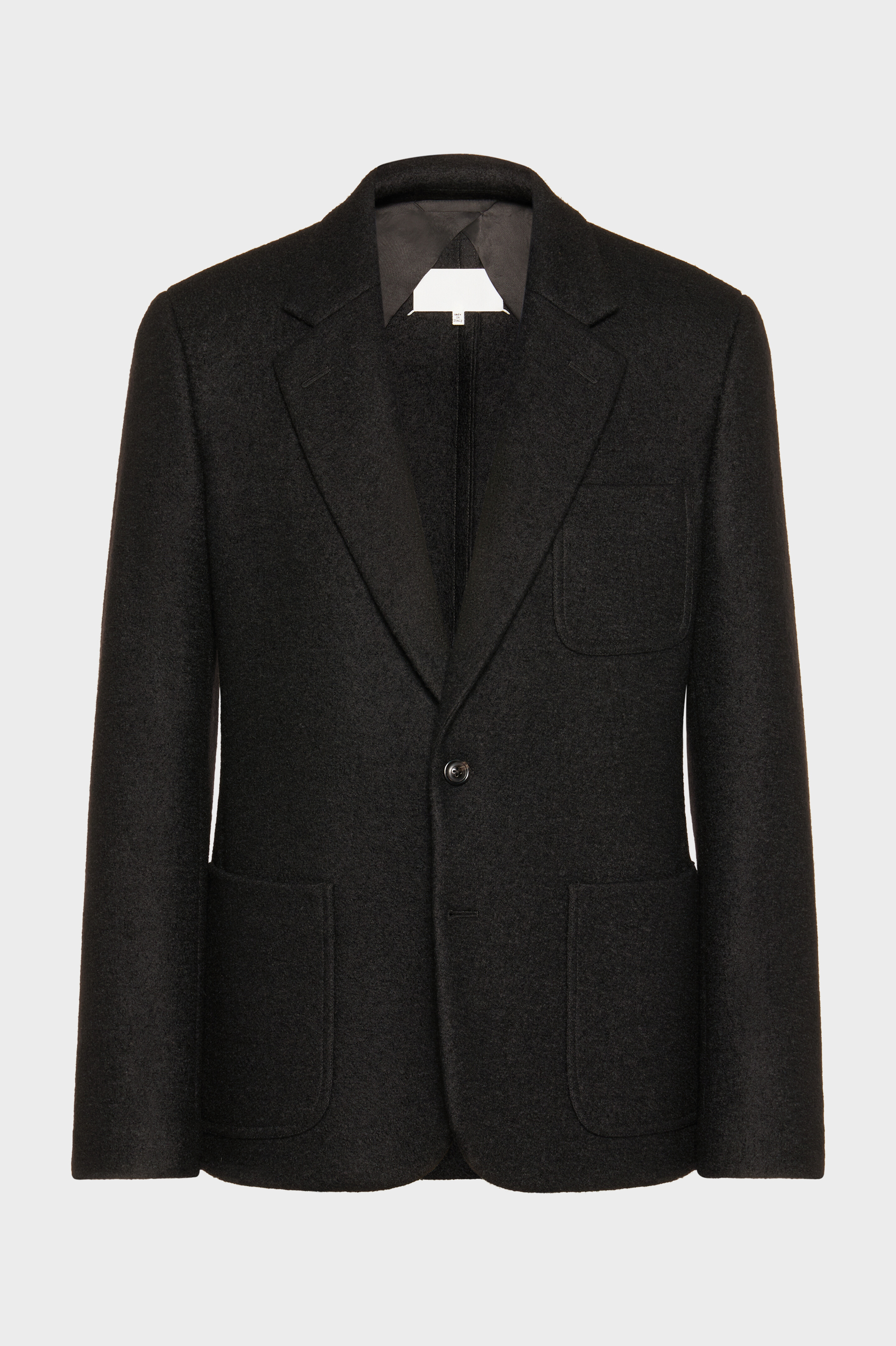 This jacket is crafted in felted wool for soft structure and natural weight. Designed with a sharp lapel and relaxed silhouette, it features oversized patch pockets and stitched detailing at the cuffs – a subtle expression of subversive tailoring. At the back, the Maison’s signature four stitches appear; the opposite of a label. Product Details Item ID S67BN0056S54451900 Primary Fabric: 100% Virgin Wool Lining: 100% Viscose-Rayon Pocket Lining: 100% Cotton Straight-cut felted wool jacket Notched lapel Two-button front closure Single chest patch pocket Two front patch pockets Four stitches at the cuffs Single back vent Made in Italy