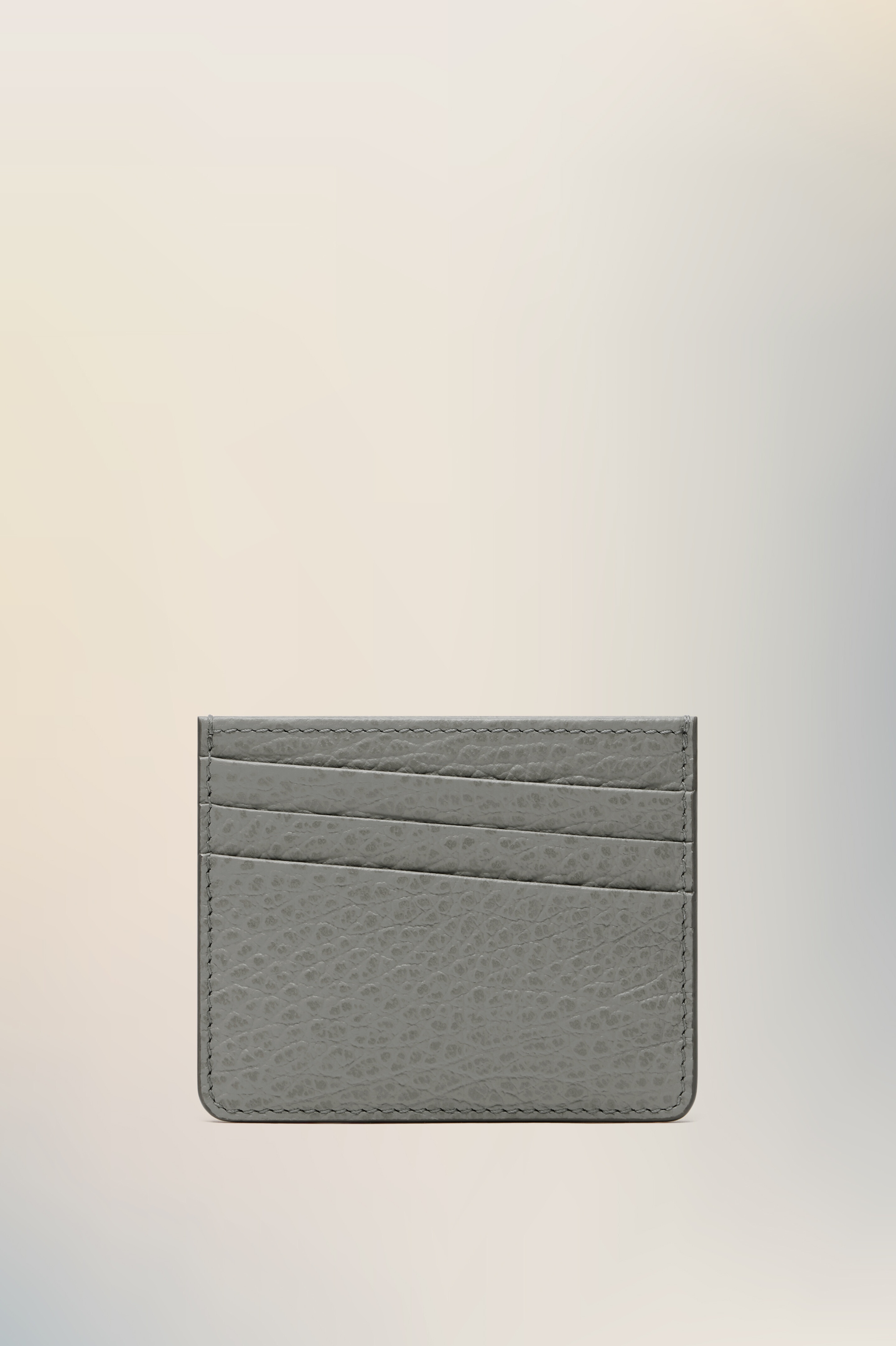 The cardholder comes in embossed grainy leather with five card slots and a middle section with the numeric logo inside. Maison Margiela's signature, the four stitches, appear on the back; the opposite of a label. Product Details Item ID SA1VX0006P4455T8127 Body: 100% Calf Leather Inside: 100% Calf Leather Lining: 100% Viscose Grainy leather card holder with angled slots Five card slots with a diagonal cut Central compartment Numeric signature to the interior Four stitches at the back. Made in Italy