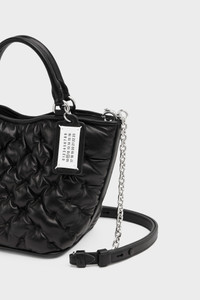 The Glam Slam embroidery tote mini is crafted with a quilted, padded body and silver-tone chain strap. Its distinctive texture mimics the traditional matelasse quilting of Marseilles – a key reference behind the line, which debuted in the SS18 collection. Reflecting the notion of unconscious glamour, the Glam Slam balances softness and structure with instinctive ease. Finished with the Maison’s numeric logo tag and a hidden pocket mirror for on-the-go elegance. Product Details Item ID SB1WD0050P6434T8013 Body: 100% Ovine Leather Application: 100% Calf Leather Lining: 100% Polyester Inside: 100% Ovine Leather Accessories: 100% Polymethyl Methacrylate Metallic hardware Padded tote bag Top handles Detachable chain strap Open top Internal pocket with mirror Numeric signature tag at the front Made in Italy