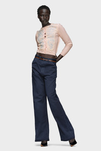 This cardigan is framed by contrast, with applique patches that resemble the reverse side of delicately embroidered fabric. Vertical stitch lines mirror the inside of a garment, aligning with the Maison’s decortique approach. Maison Margiela’s signature, the four stitches, appear at the back; the opposite of a label. Product Details Item ID S51HP0022M13153216 Primary Fabric: 100% Virgin Wool Secondary Fabric: 54% Acetate 26% Polyamide-Nylon 20% Silk Secondary Fabric: 100% Cotton Fitted wool cardigan Overlay with raw-edged embroidered panels Button-through front Ribbed cuffs and hem Four stitches at the back Made in Italy