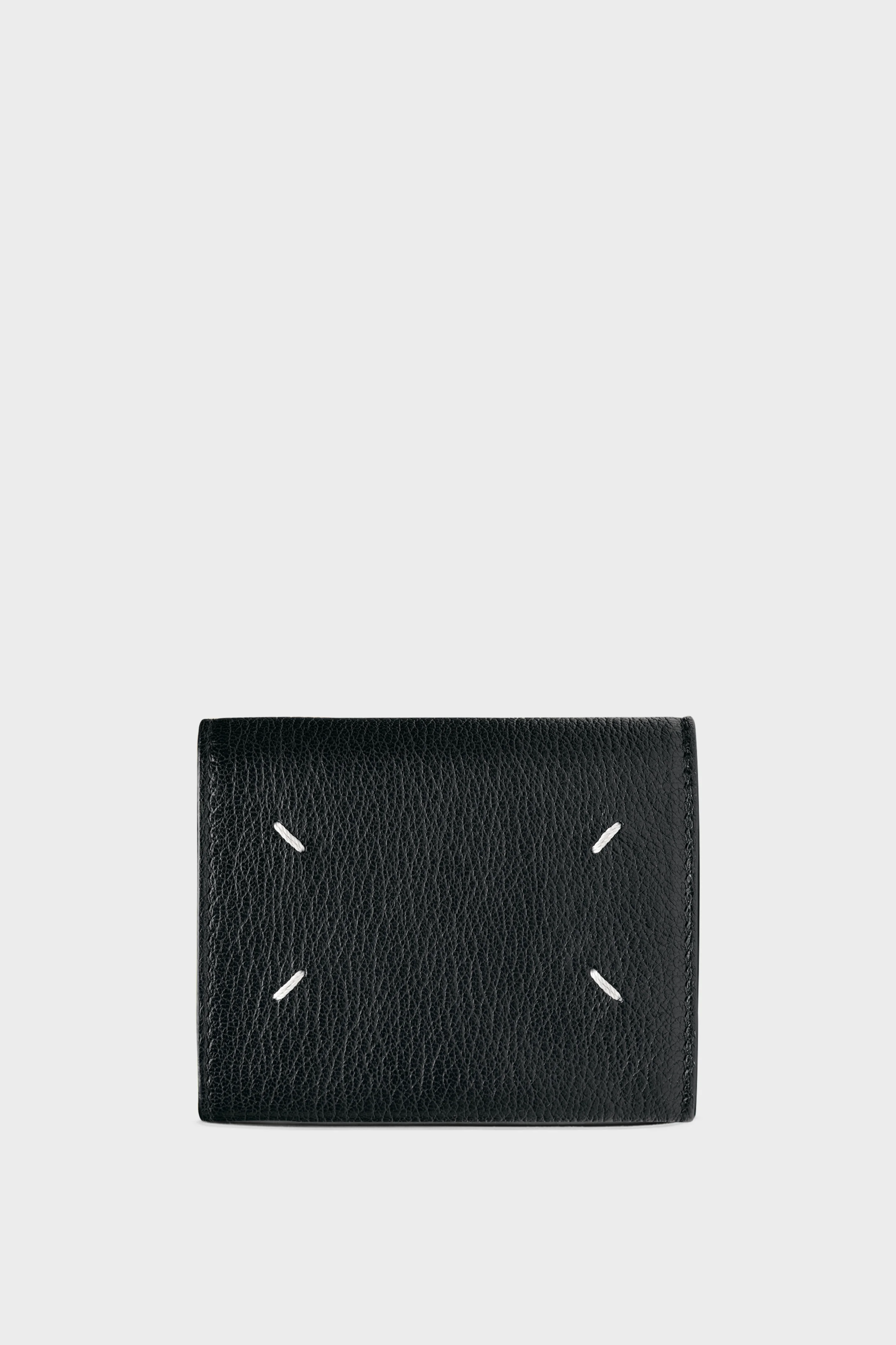 Crafted from grainy leather this card case has double snap buttons, and Maison Margiela's signature, the four white stitches. Product Details Item ID SA3VX0010P4806T8013 Outer: Goat nappa leather with soft touch Lining: Viscose Four stitchesat the back Inside logo stamping Snap button closure Three inside flat pockets Two card slots Made in Italy 10 cm x 8 cm/3,9 in x 3,1 in (Length x Height)