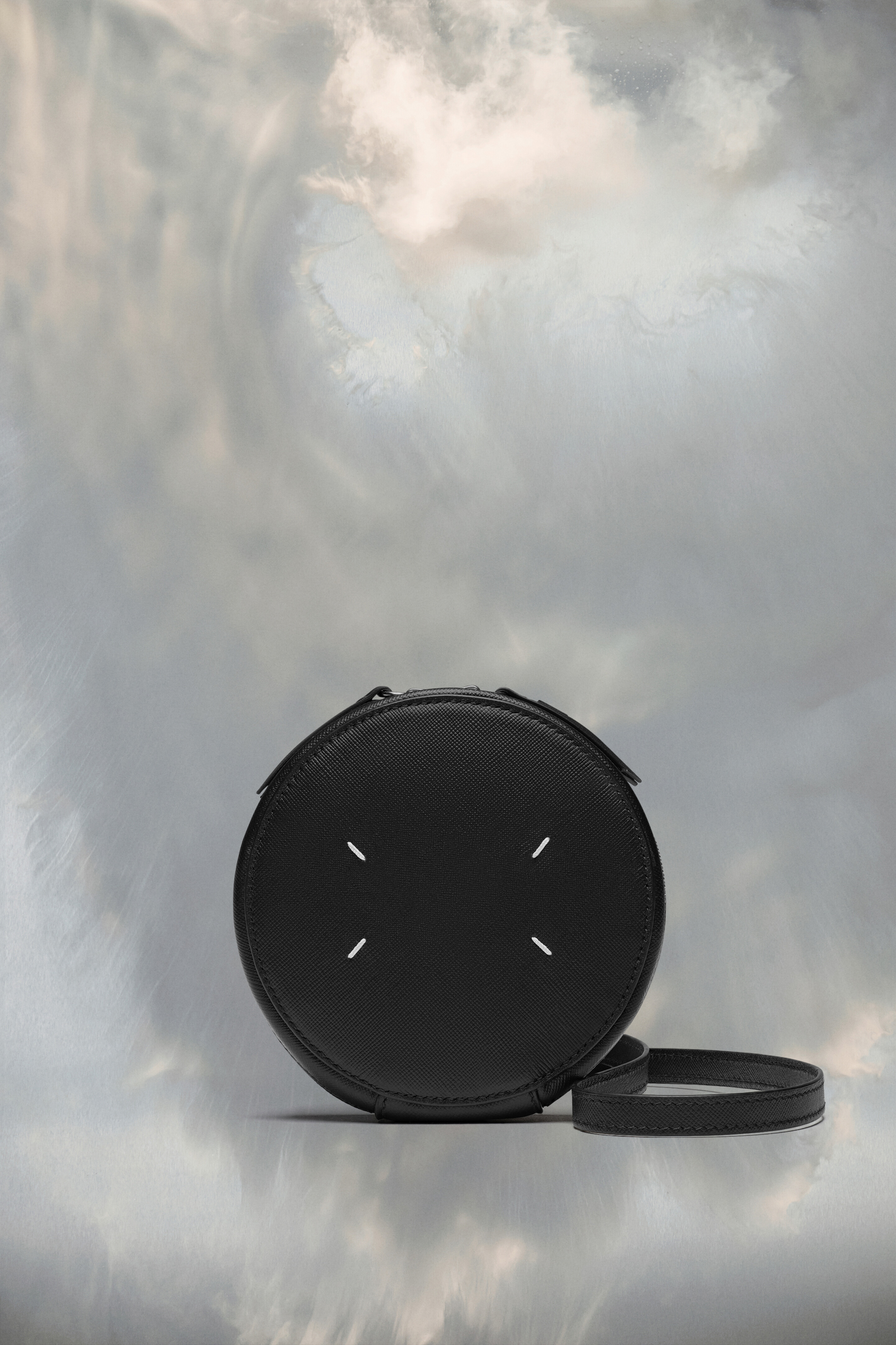 With an adjustable shoulder strap, the mini circular bag comes in calf leather with metallic hardware detailing and an inside mirror. Maison Margiela’s signature Four stitches appear on the front; the opposite of a label. Product Details Item ID SA2VL0016P6799T8013 Body: 100% calf leather Inside: 50% nylon, 50% polyurethane Metallic hardware Micro saffiano leather mini bag Adjustable leather shoulder strap Zip closure:Four stitches at the front Inside Maison Margiela logo stamping Inside flat pocket Inside mirror Clean with a gentle leather cleanser and a damp microfiber cloth Made in Italy 13 cm x 3,5 cm x 13 cm/5 in x 1,4 in x 5 in (Height x Width x Length) Max. shoulder strap drop: 50 cm/19,6 in Min shoulder strap drop: 45 cm/17,7 in