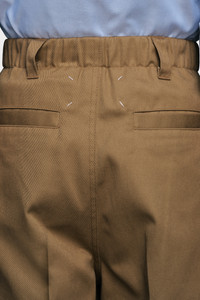 With a high-waist and pleats, the wide skater chino trousers feature the Margiela hook. The back is elasticated, with side and back pockets. Maison Margiela's signature, the Four stitches, appear at the back; the opposite of a label. Product Details Item ID S50KA0652S54042114 Primary Fabric: 60% Polyester 40% Cotton Pocket Lining: 65% Polyester 35% Cotton Straight-leg trousers in a poly-cotton blend Pressed creases Belt loops Four stitches at the back Made in Italy Model is 6'2" tall and wears a size 46.