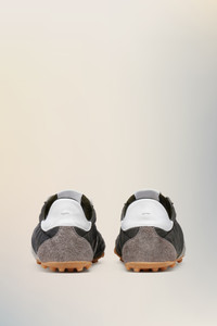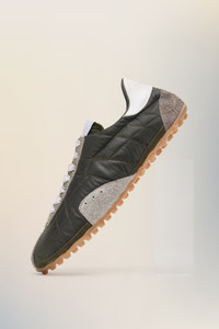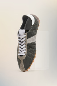 Inspired by 1960s spike shoes, the Sprinters redefine retro athleticism through exaggerated textural contrasts. The uppers, crafted from quilted fabric and hairy suede, are accentuated by a bold contrast heel and precisely stitched panels. A subtle numeric logo appears on the tongue, while the outsole bears the Maison’s footwear code, 22.Maison Margiela's signature white stitch appears at the back; the opposite of a label. Product Details Item ID S57WS0514P7415HB069 Upper: 100% Polyester Contrast: 100% Calf Leather Contrast: 100% Calf Leather Lining: 100% Cotton Contrast: 100% Calf Leather Inside: 100% Calf Leather Sole: 100% Rubber Low-top sneakers with quilted exterior Suede calf leather trims and overlays Gum rubber sole with grip tread Numeric signature label at the tongue White stitching at the back Made in Italy