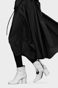 Crafted in vintage nappa leather, these block-heel ankle boots feature the Maison's Bianchetto treatment, which wears with use for an evolving look. They are designed with the Tabi split-toe, inspired by the traditional 15th century Japanese sock bearing the same name – launched for the Maison's debut collection in 1989. It captures the avant-garde and insubordinate spirit of the Maison and exists as a heritage classic, continually explored through each collection. 8cm heel. Product Details Item ID S58WU0260P4162H1532 Upper: 100% Nappa leather Lining: 100% Calf leather Inside: 100% Calf leather Sole: 100% Calf leather Contrast: 100% Rubber Heel height: 8 cm/3 in Cylindrical heel Handpainted treatment Tabi split toe White stitching at the back Hook closure Brand logo on the insole Made in Italy A digital certificate provided by the Aura Blockchain Consortium guarantees the authenticity of this product. Discover more on auraluxuryblockchain.com/#about The model is 180cm tall. Model wears size 40.