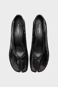 Maison Margiela presents the Tabi new ballerinas, which take their design from ballerina shoes in the house archives. In a broken mirror finish leather, with small heel, the pair feature the Tabi split-toe, inspired by the traditional 15th century Japanese sock bearing the same name – launched for the Maison's debut collection in 1989. It captures the avant-garde and insubordinate spirit of the Maison and exists as a heritage classic, continually explored through each collection. Product Details Item ID S58WZ0133P5016T8001 Upper: 100% calf leather Lining: 100% lamb leather Inside: 100% lamb leather Sole: 100% calf leather Contrast: 100% rubber Heel height: 3 cm/1 in Cylindrical heel Ballerina shoes with broken mirror effect Tabi split toe Cotton knot White stitching at the back Brand logo on the insole Made in Italy A digital certificate provided by the Aura Blockchain Consortium guarantees the authenticity of this product. Discover more on auraluxuryblockchain.com/#about