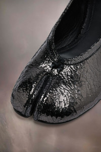 Maison Margiela presents the Tabi new ballerinas, which take their design from ballerina shoes in the house archives. In a broken mirror finish, crafted from leather, the pair feature the Tabi split-toe, inspired by the traditional 15th century Japanese sock bearing the same name – launched for the Maison's debut collection in 1989. It captures the avant-garde and insubordinate spirit of the Maison and exists as a heritage classic, continually explored through each collection. Product Details Item ID S58WZ0130P5016T8001 Upper: 100% calf leather Lining: 100% lamb leather Inside: 100% lamb leather Sole: 100% calf leather Contrast: 100% rubber Ballerina shoes with broken mirror effect Tabi split toe Cotton knot White stitching at the back Brand logo on the insole Made in Italy A digital certificate provided by the Aura Blockchain Consortium guarantees the authenticity of this product. Discover more on auraluxuryblockchain.com/#about