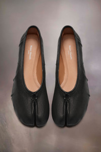 In soft nappa leather, the Maison presents the Tabi new ballerinas, which take their design from ballerina shoes in the archives. They are crafted with handmade folds, manually worked to create an artisanal vintage effect at the sides. They feature the Tabi split-toe, inspired by the traditional 15th century Japanese sock bearing the same name – launched for the Maison's debut collection in 1989. It captures the avant-garde and insubordinate spirit of the Maison and exists as a heritage classic, continually explored through each collection. Product Details Item ID S58WZ0127P6378T8013 Upper: 100% lamb leather Lining: 100% calf leather Inside: 100% calf leather Sole: 100% calf leather Ballerina shoes in nappa leather Handmade leather folds Vintage treatment on the side Cotton knot at the front White stitching at the back Due to the delicacy of nappa leather, it is recommended to use vegetable leather products for care and maintenance Made in Italy A digital certificate provided by the Aura Blockchain Consortium guarantees the authenticity of this product. Discover more on auraluxuryblockchain.com/#about