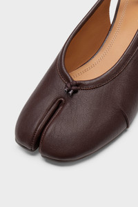 Maison Margiela presents the Tabi new ballerinas, which take their design from ballerina shoes in the house archives. The slingbacks have a 3cm heel and are crafted in soft nappa leather, with a handcrafted used treatment applied at the folds, base and seams, manually worked to create an artisanal vintage effect. They feature the Tabi split-toe, inspired by the traditional 15th century Japanese sock bearing the same name – launched for the Maison's debut collection in 1989. It captures the avant-garde and insubordinate spirit of the Maison and exists as a heritage classic, continually explored through each collection. Product Details Item ID S58WZ0141P6378T2358 Upper: 100% Calf Leather Lining: 100% Ovine Leather Inside: 100% Ovine Leather Contrast: 100% Calf Leather Sole: 100% Calf Leather Contrast: 100% Rubber Tabi slingback heeled mules in leather Notched vamp Front knotted detail Stacked block heel Maison Margiela signature at the insole Made in Italy
