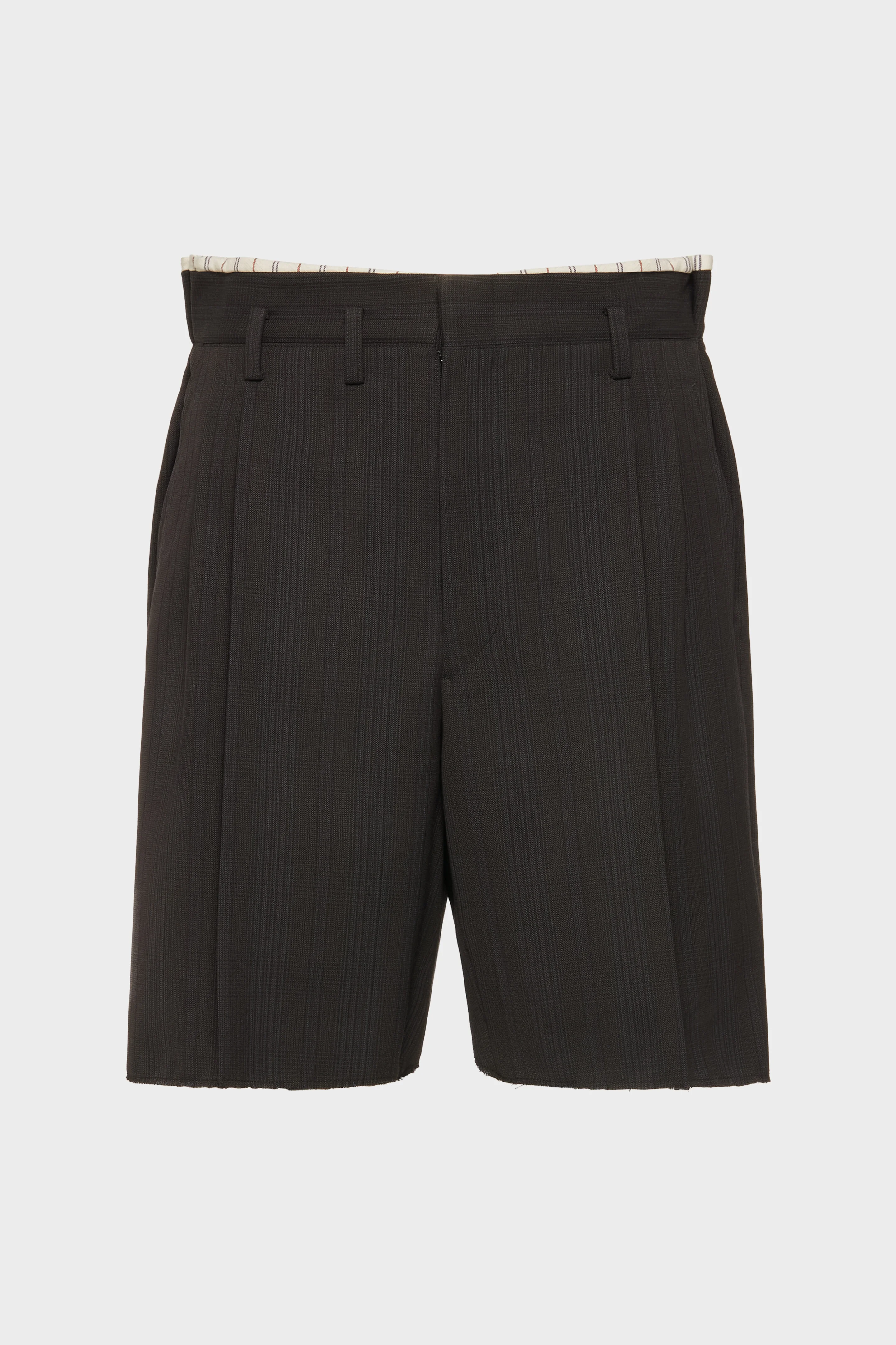 These tailored shorts feature crisp pleats and an unfinished hem. A striped interior at the waistband offers a quiet take on Anonymity of the Lining – a house code that subtly inverts expectation. Maison Margiela’s signature, the four stitches, appear at the back; the opposite of a label. Product Details Item ID S50MU0090M35491001F Primary Fabric: 99% Virgin Wool 1% Cotton Tailored shorts with exposed interior waistband Front pleats Asymmetrical belt loops Four stitches at the back Made in Italy