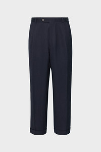 Crafted from a wool and linen blend, the woven trousers feature turn-ups for a more relaxed silhouette along with pleat detailing. They are designed with buttoned pockets at the back, and the Margiela hook closure. Maison Margiela's signature, the four stitches, appear at the back; the opposite of a label. Product Details Item ID S50KA0669M35287511 Primary Fabric: 65% Virgin Wool 35% Linen Lining: 100% Viscose-Rayon Pocket Lining: 100% Cotton Wool linen barathea trousers High waist Staight leg Belt loops Central pleats Horn button closure Maison Margiela hook Side pockets Four stitches at the back Made in Italy
