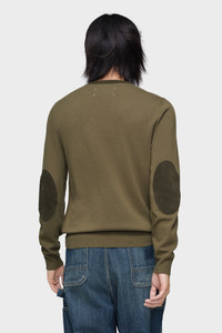 A refined staple with subversive nuance. This two-tone crewneck features contrast sleeves, tonal elbow patches and clean ribbed trims, subtly challenging the conventions of classic knitwear. At the back, the Maison’s signature four stitches appear; the opposite of a label. Product Details Item ID S67HL0011M13177004F Primary fabric: 100% Wool Crewneck top in contrast two-tone wool knit Straight fit with ribbed hem and cuffs Tonal elbow patches Four stitches at the back Made in Italy