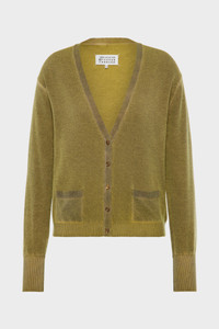 This cardigan is crafted in soft virgin wool with a V-neckline and button closure. Ribbed trims finish the hem and cuffs, shaping a subtle silhouette. At the back, the Maison’s signature four stitches appear; the opposite of a label. Product Details Item ID S51HP0029M13224003F Primary fabric: 100% virgin wool Gauge 12 Patch pockets at the front Long sleeves V-neck Flat buttons closure at the front Four stitches at the back Made in Italy