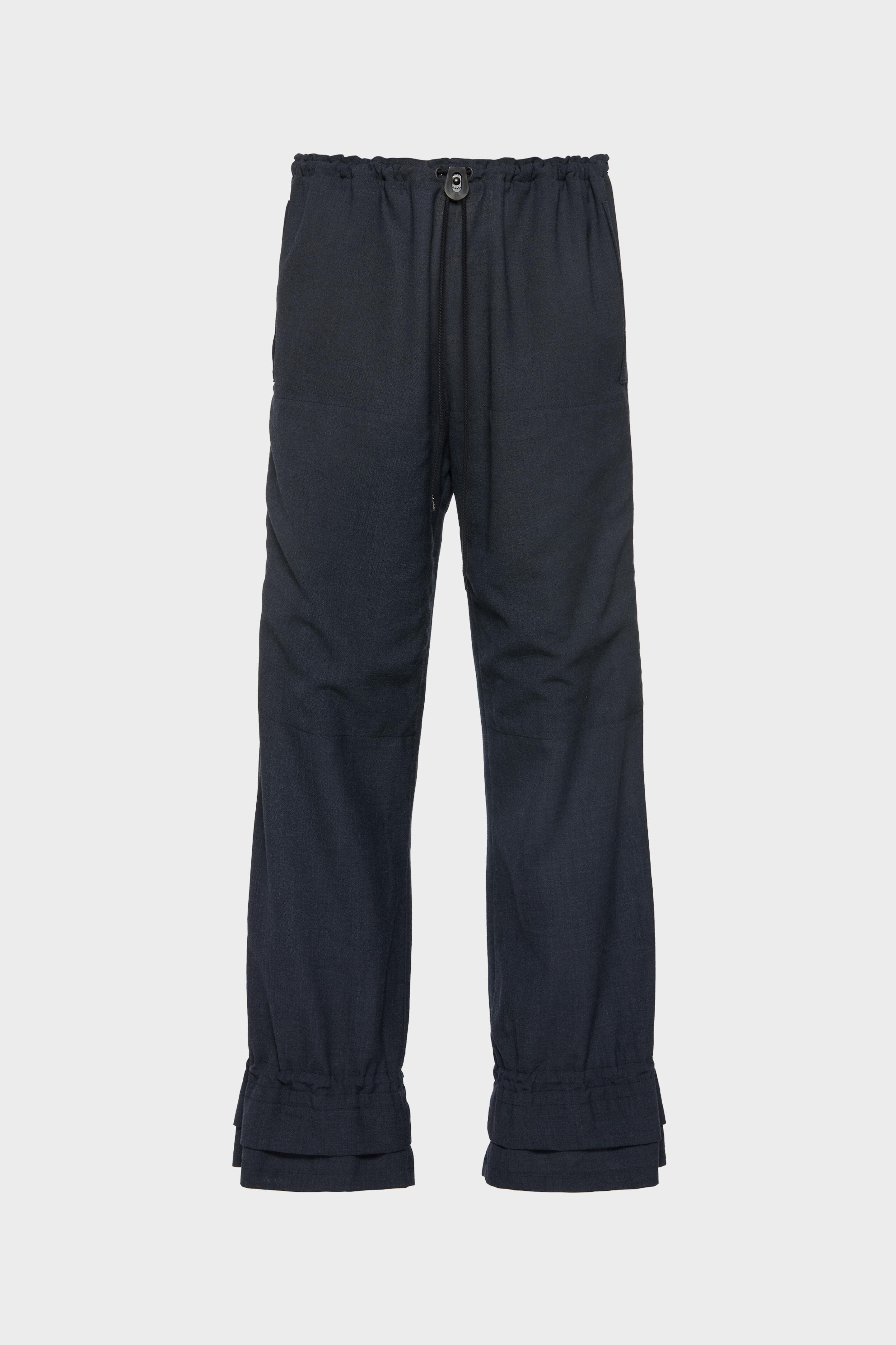 With their gathered cuffs and drawstring waist, these trousers take cues from workwear archetypes, elevated through subversive construction. The layered hem detail adds a sculptural finish, underscoring the Maison’s experimental approach to proportion. Maison Margiela’s signature, the four stitches, appear at the back; the opposite of a label. Product Details Item ID S50KA0690M35535511M Primary Fabric: 100% Wool Pocket Lining: 100% Cotton Wool trousers with gathered waistband and concealed drawstring Tonal stitched knee panels Double-layered hem with ruched finish Four stitches at the back Made in Italy